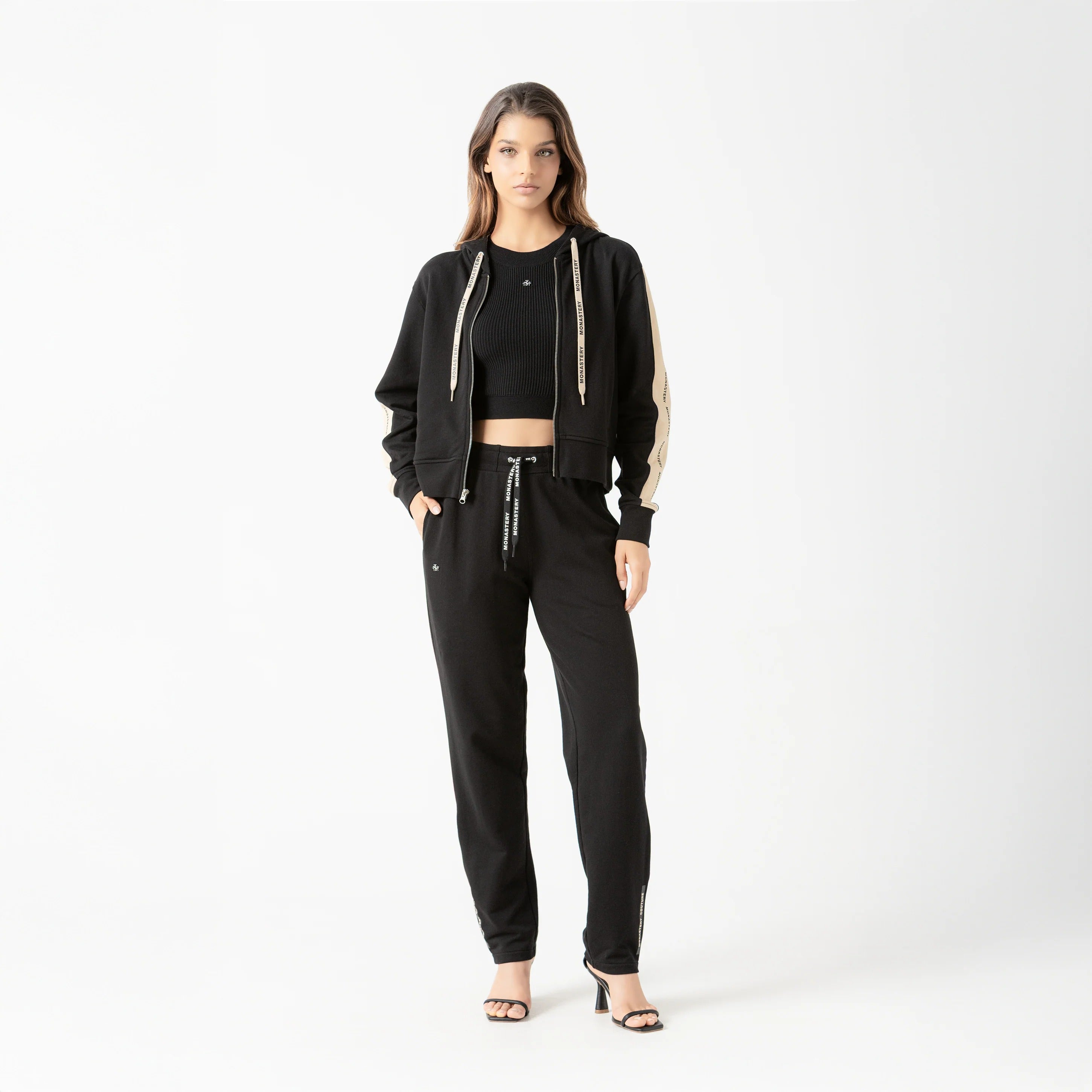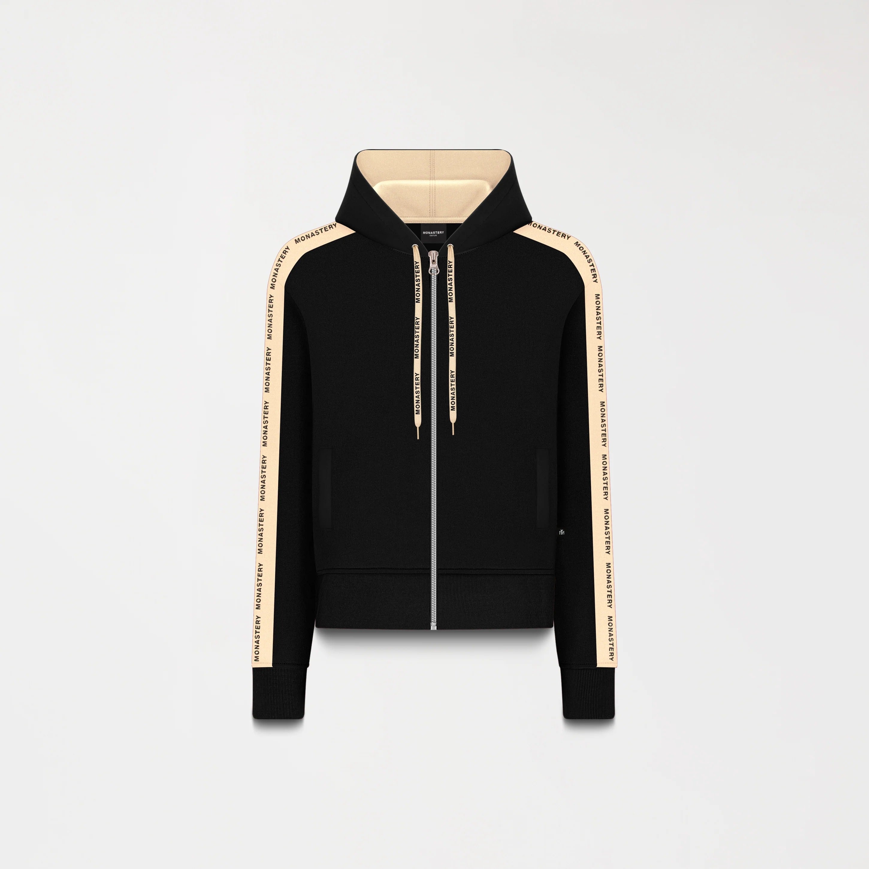 Hoodie femenino de silueta moderna con cremallera separable frontal, que ofrece un uso versátil y cómodo.