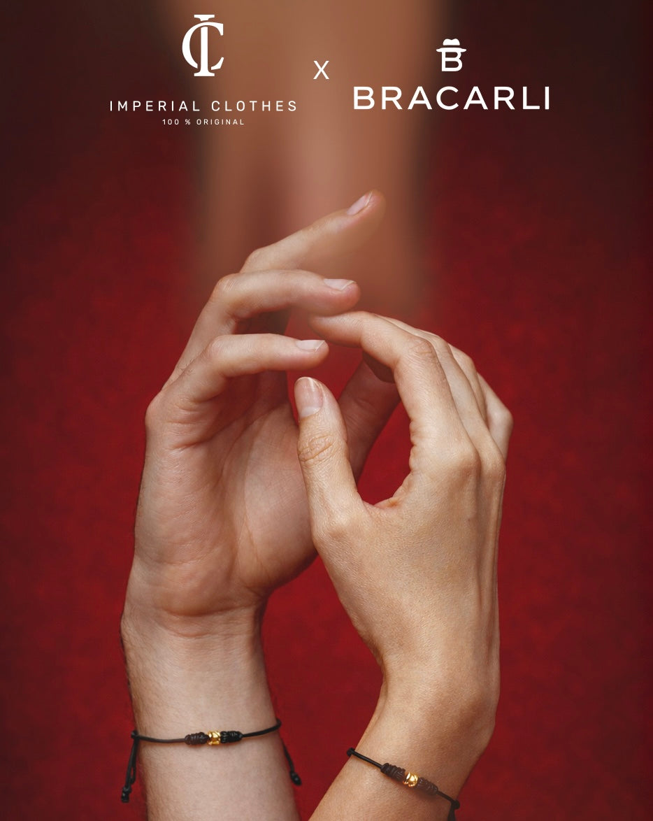 Manilla en hilo negro con oro de 18 kilates de la Joyeria BRACARLI.